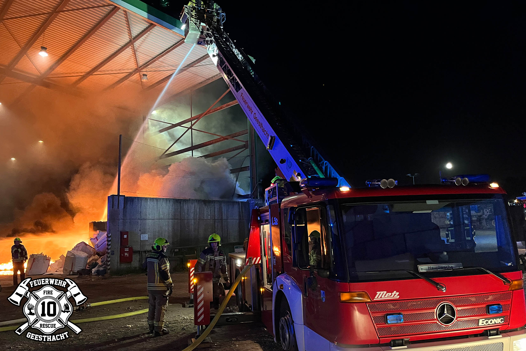 Um 02:48 Uhr fuhren wir mit mehreren Fahrzeugen zu dem gemeldeten Lagerhallenbrand. In der offenen Halle brannten in Boxen ca. 20 m²