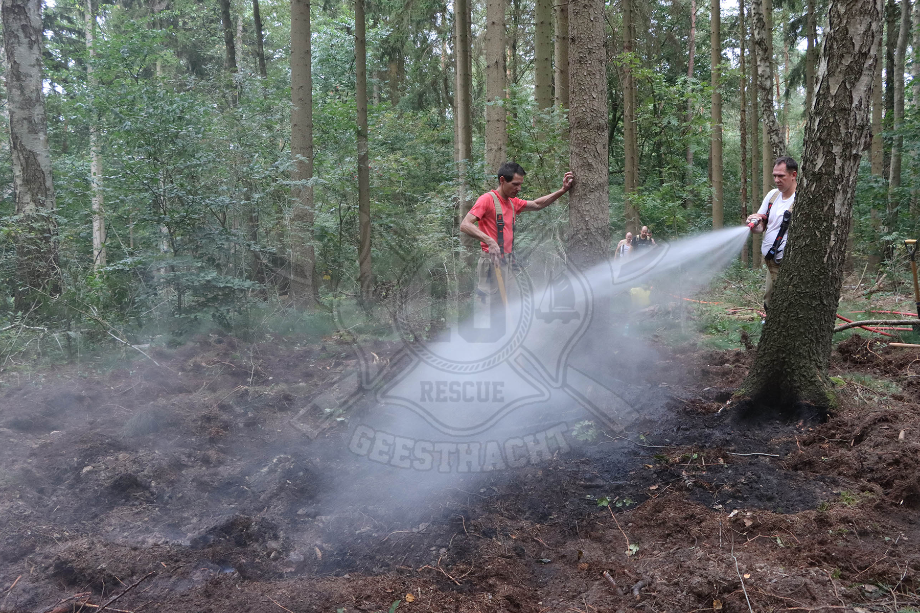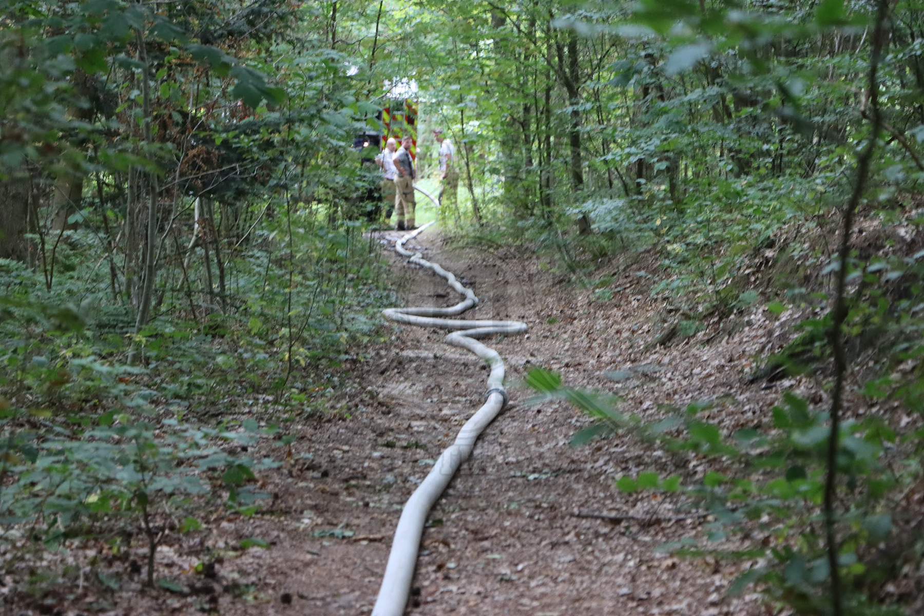 Da die Ortsangaben ungenau waren, mussten wir die Einsatzstelle und den Weg dorthin suchen. Die Zuwegungen waren für unsere Einsatzfahrzeuge zu klein und versperrt, deshalb befüllten wir für den ersten Löschangriff unsere Löschrucksäcke und marschierten zu Fuß zur Brandstelle. Dort brannten ca. 20 m² Unterholz. Im weiteren Verlauf des Einsatzes verlegten wir mehrere hundert Meter Schlauch, um genügend Wasser vor Ort zu haben. Da sich das Feuer tief in den Waldboden gefressen hatte, mussten wir mühselig den Boden umgraben und nach und nach ablöschen. Dieser Einsatz zog sich 3 Stunden hin.