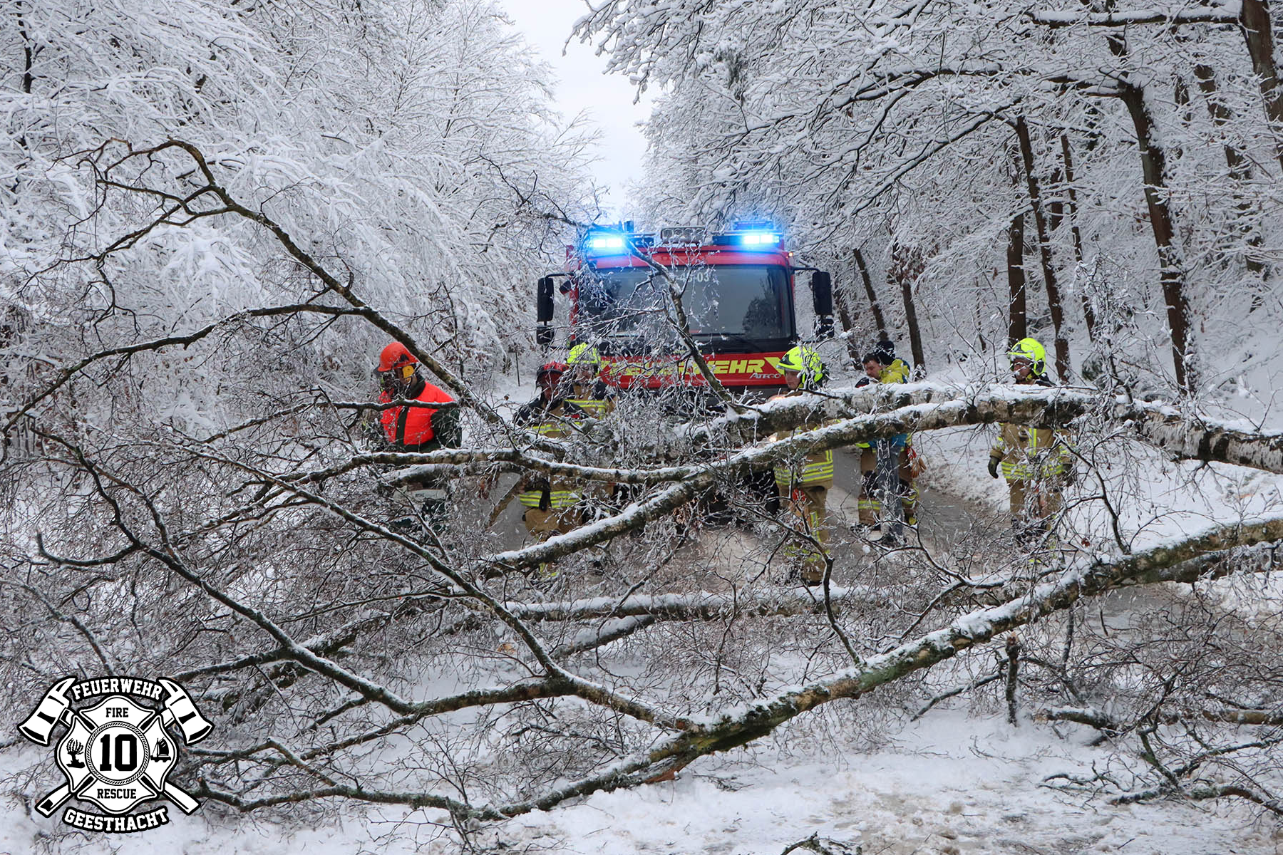 Das winterliche Schneewetter sorgte am Wochenende für zahlreiche Einsätze. Die beiden Ortswehren Ortswehr Geesthacht und Ortswehr Grünhof-Tesperhude verzeichneten gemeinsam rund 80 wetterbedingte Einsätze. Zahlreiche umgestürzte Bäume sowie gefährlich herabhängende Äste mussten von Straßen und Gehwegen entfernt werden. Durch die hohe Schneelast waren Äste abgebrochen, blockierten Verkehrsflächen oder hingen noch lose in den Bäumen und stellten eine Gefahr dar. Aufgrund des hohen Einsatzaufkommens wurde unsere Amtsführungsstelle besetzt, um die Einsätze zentral zu koordinieren. Zusätzlich unterstützte uns die Feuerwehr Lauenburg mit einer Drehleiter. Vielen Dank für die kameradschaftliche Unterstützung! 🚒🤝❄️ Ein LKW rutschte bei glatten Straßenverhältnissen in den Graben. Außerdem führten wir eine Erstversorgung nach einem Sturz im Schnee durch, bis der Rettungsdienst eintraf. ❄️🚨 Gemeinsam stark. Für Geesthacht. Bericht: M.Tepp Bilder: T.Jann / Lübecker Nachrichten, Feuerwehr Geesthacht