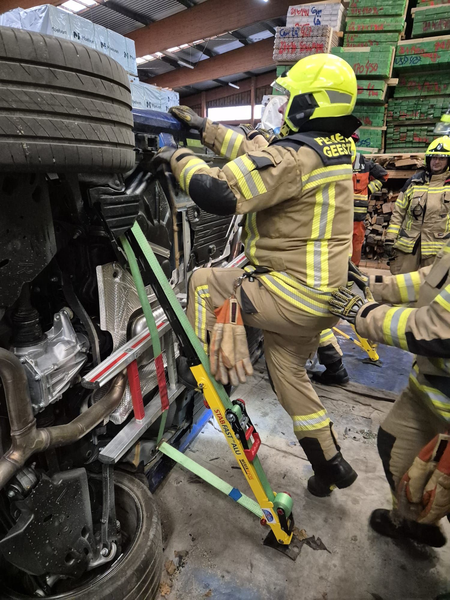 Am 16.11.2024 nahmen 16 Kameraden an einem Seminar "Neue Fahrzeugtechnologie" im Rescue Trainings Center Nord in Bargteheide teil. Ein nagelneues Fahrzeug ("Null"-Serie) wurde mit unseren Materialien zerschnitten und so einzelne Techniken an dem Fahrzeug geübt. Nach einer kurzen Theorieeinheit konnte jeder Teilnehmer die Gerätschaften ausprobieren und eigene Erfahrungen sammeln. Mit vielen Eindrücken und neuen Erkenntnissen ging es nach 8 Stunden Fortbildung wieder nach Hause.