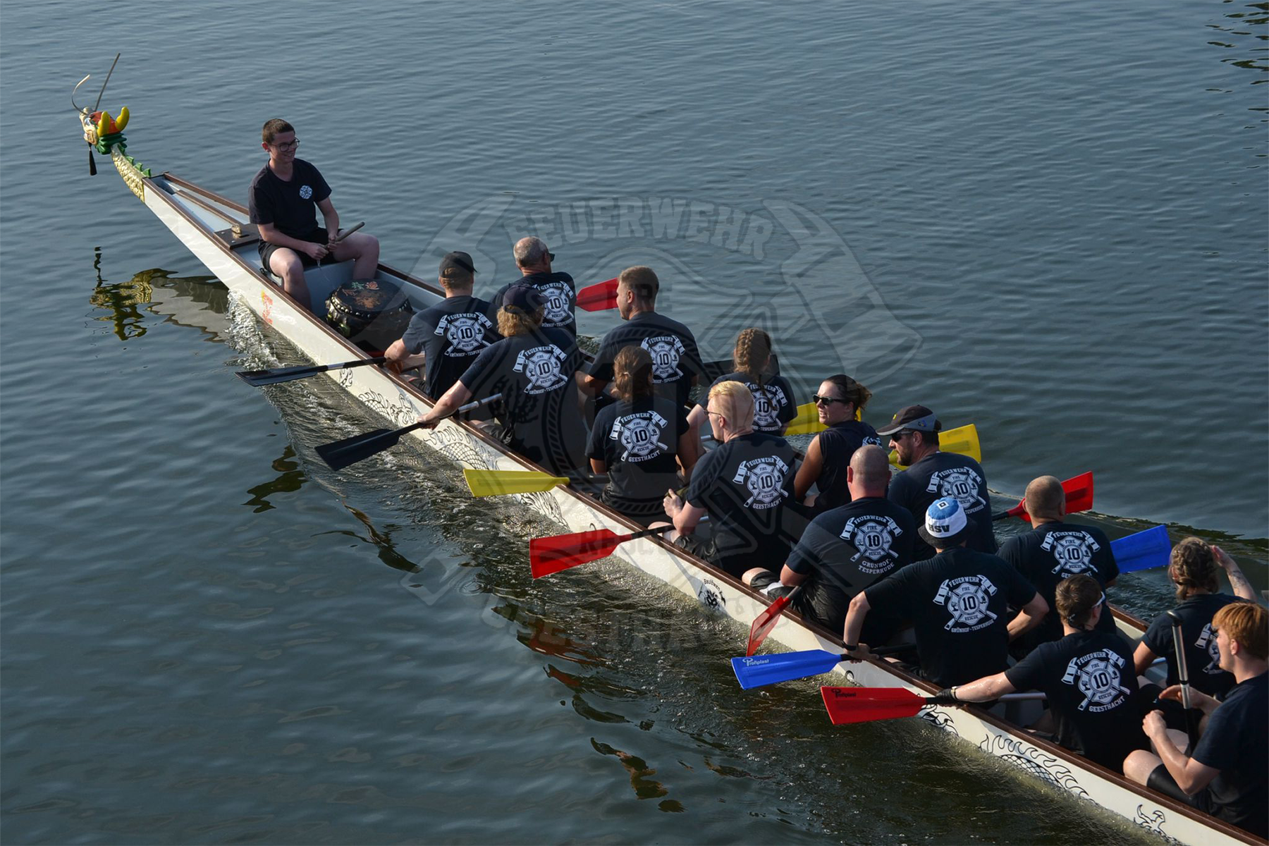 Ein Team der Gemeindefeuerwehr trat 07.09.2024 beim diesjährigen Elbfest im Drachenbootrennen an.