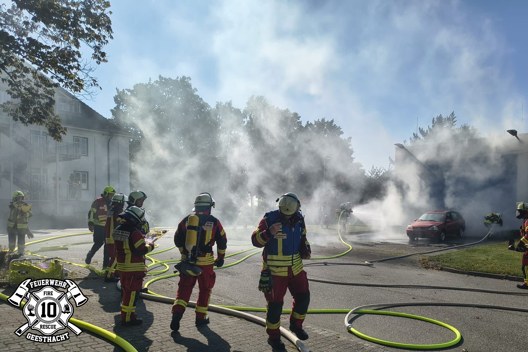 In den frühen Morgenstunden wurden wir heute um 05:45 Uhr zu einem Brand in die Bertha-von-Suttner-Schule alarmiert. Bereits auf Anfahrt war ein deutlicher Feuerschein sichtbar. Aufgrund der Lage erfolgte umgehend eine Stichworterhöhung auf FEU 3. Daraufhin wurde die Feuerwehr Grünhof-Tesperhude nachalarmiert. Zusätzlich wurden die Drehleiter der Feuerwehr Lauenburg sowie die Feuerwehren Hamwarde, Escheburg und Börnsen zur Unterstützung nachgefordert. Beim Eintreffen der ersten Kräfte standen Räume des NaWi-Traktes (Naturwissenschaftstraktes) der Schule in Vollbrand. Da sich in den angrenzenden Chemieräumen Gasanschlüsse befanden, wurden die Stadtwerke Geesthacht zur Einsatzstelle gerufen, um die Gaszufuhr abzusperren. Unverzüglich wurde die Brandbekämpfung über einen Außenangriff sowie über das Wenderohr der Drehleiter eingeleitet. Parallel bauten nachrückende Kräfte von mehreren Hydranten aus eine stabile Wasserversorgung auf. Nachdem diese stand, konnte auch ein Innenangriff unter Atemschutz begonnen werden. Zur besseren Organisation und Koordination der Einsatzstelle wurden zwei Einsatzabschnitte gebildet: Abschnitt 1: Brandbekämpfung Abschnitt 2: Entrauchung und Belüftung des Gebäudes Zur Entrauchung wurden mehrere Druckbelüfter eingesetzt. Außerdem wurde das gesamte Gebäude kontrolliert und auf Glutnester überprüft. Insgesamt waren rund 180 Einsatzkräfte der Feuerwehren vor Ort, darunter 26 Atemschutztrupps im Einsatz. Die Technische Drohneneinheit des Kreisfeuerwehrverbandes Herzogtum Lauenburg unterstützte die Einsatzleitung mit Luftaufnahmen und ergänzenden Wärmebildern, die mithilfe der an der Drohne verbauten Wärmebildkamera erstellt wurden. So konnte die Lage aus der Vogelperspektive präzise beurteilt und gezielt auf verbleibende Glutnester reagiert werden. Der Baufachberater des THW Lauenburg wurde ebenfalls hinzugezogen. Das Technische Hilfswerk (THW) übernahm anschließend Maßnahmen zur Eigentums- und Absturzsicherung. Hierbei wurden beschädigte Fenster- und Dachöffnungen mit Holz- und OSB-Platten verschlossen. Die DLRG Oberelbe stellte während des Einsatzes die Verpflegung der Einsatzkräfte sicher. Die Nachlöscharbeiten dauerten mehrere Stunden an. Im Anschluss erfolgte eine Brandnachschau, um verbliebene Glutnester mithilfe der Wärmebildkamera aufzuspüren und ein erneutes Aufflammen zu verhindern. Der Einsatz einschließlich Nachbereitung dauerte rund acht Stunden. Die Brandursache ist derzeit noch ungeklärt, die Polizei hat die Ermittlungen aufgenommen. Ein herzlicher Dank gilt allen Einsatz- und Hilfskräften für die gute Zusammenarbeit an der Einsatzstelle.