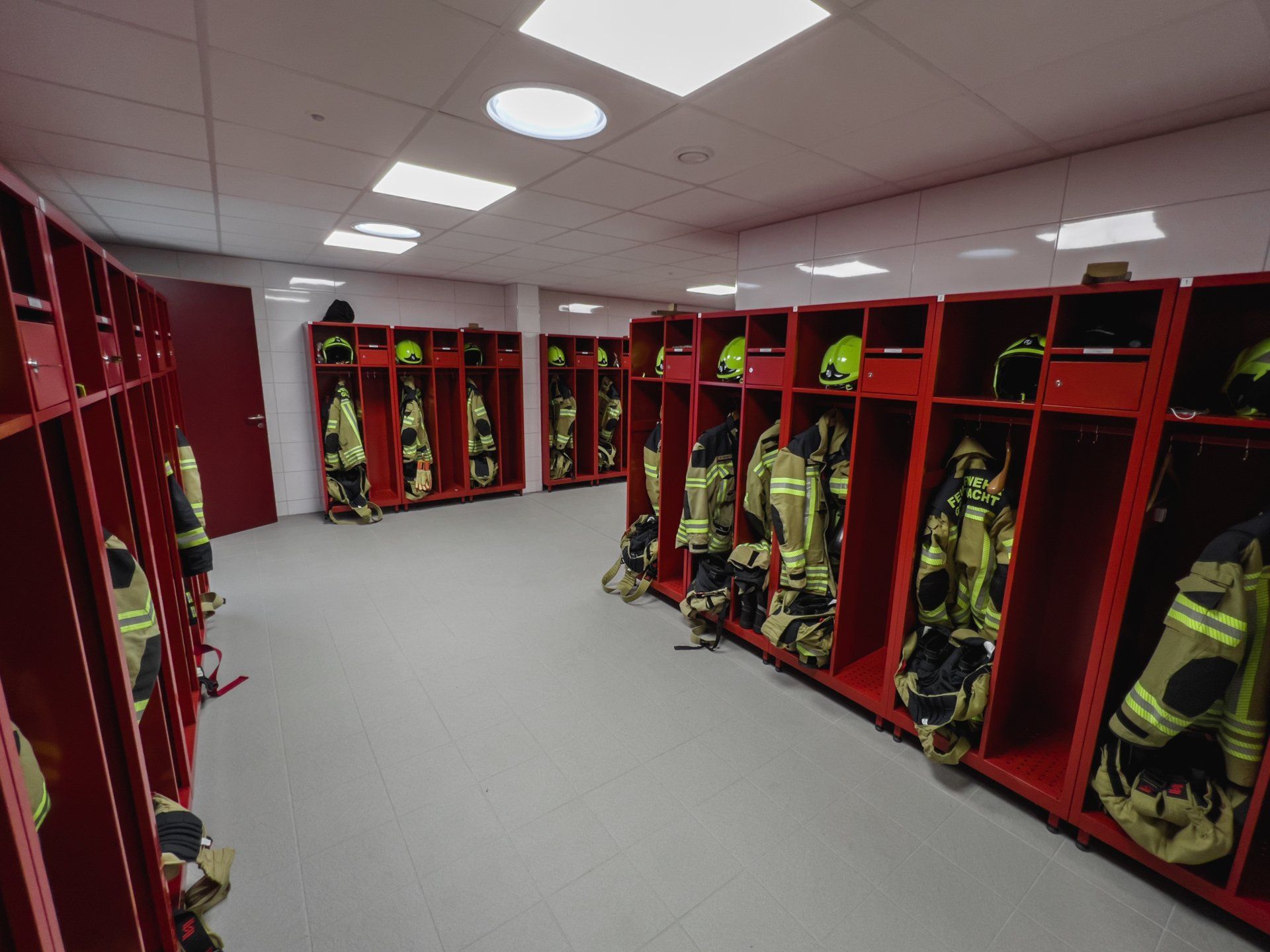 In der Wache befindet sich ein Aufenthaltsraum, Schulungsraum und moderne Umkleiden und Sanitäranlagen.