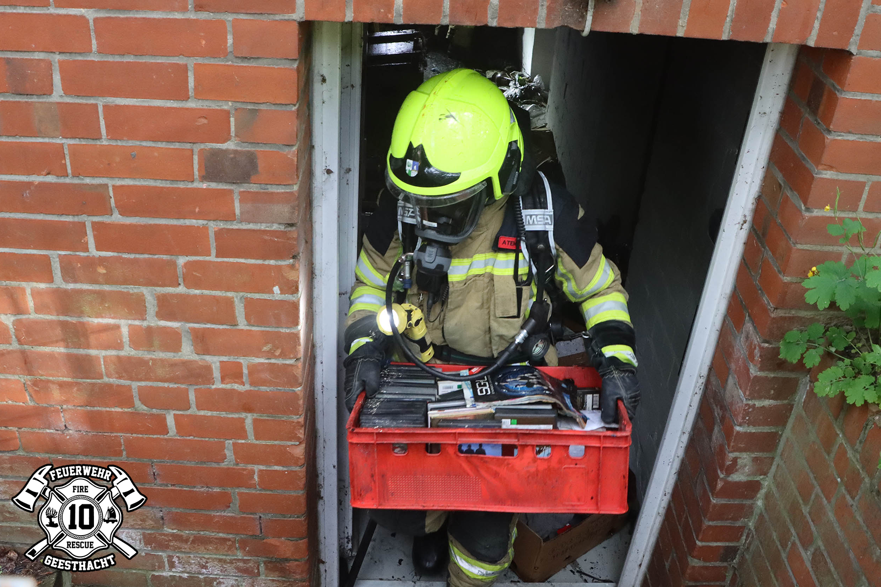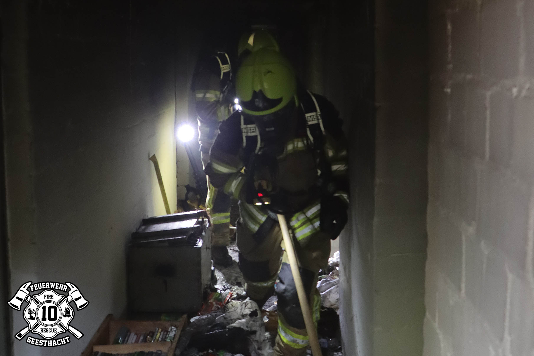 Säcken, Kisten uvm. vollgestellt waren. Das Feuer konnte schnell gelöscht werden, doch die Nachlöscharbeiten zogen sich über längere Zeit hin, da alles einzeln aus den Kellern geräumt und draußen abgelöscht werden musste. Nach gut 2 Stunden rückten wir wieder ein.
